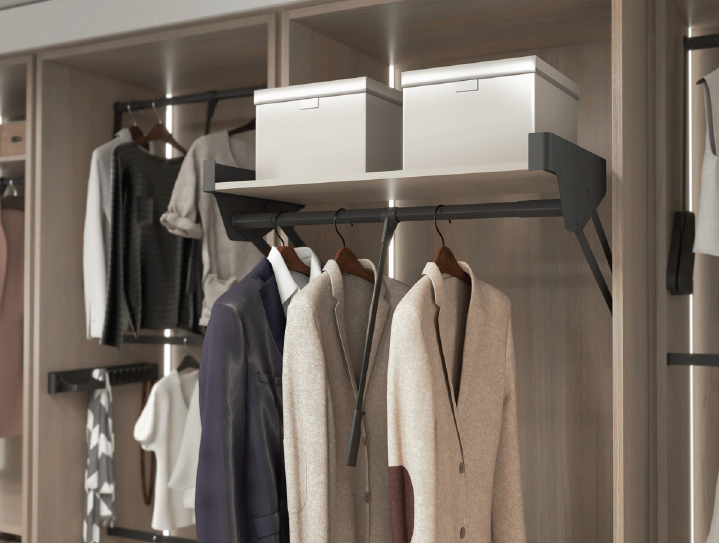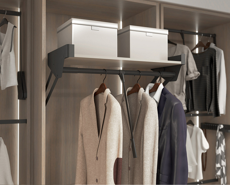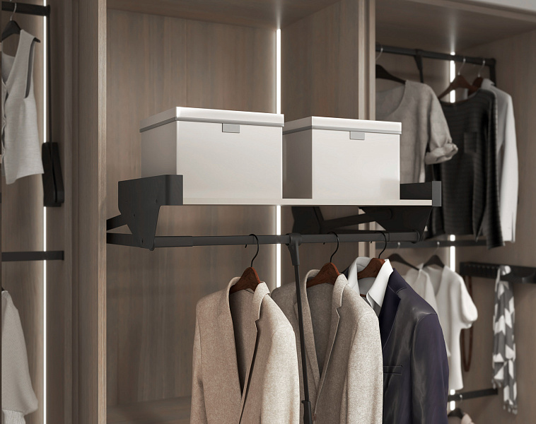 Пантограф с полкой в гардеробную Конеро W 985-1168 мм цвет ЧЕРНЫЙ Kessebohmer | официальный магазин